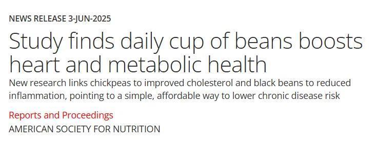 研究证实:每天吃点豆,身体真的会感谢你2025年6月,在美国营养学会年度会议“NUTRITION 2025”上公布的一项研究发现,每天多吃点豆类,就能有效改善血脂、减轻身体炎症,对心脏和身体代谢都很有好处。