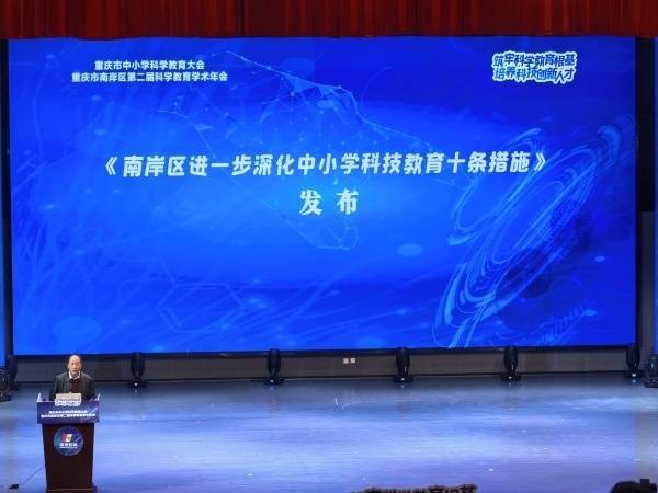 科技节启动仪式结束后,重庆市中小学科学教育大会、南岸区第二届科学教育学术年会同步举行。大会开幕式由重庆市教育科学研究院党委书记、副院长范卿泽主持。大会现场发布的《南岸区进一步深化中小学科技教育十条措施》,从融合育人理念树立、贯通式育人体系构建、课程教学改革深化、实践活动丰富、重点项目打造、阵地建设加强、队伍建设优化、浓厚氛围营造、国际交流合作、多元评价探索十个维度,系统破解科学教育资源整合不足、学段衔接不畅等痛点难题。