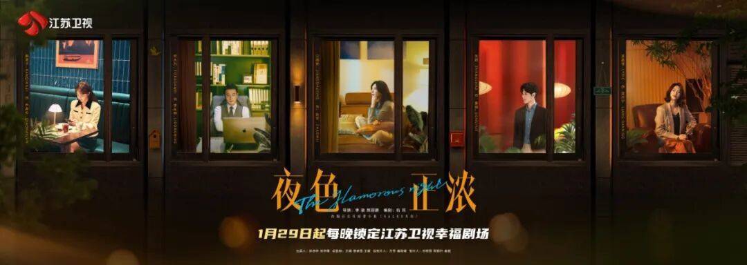 1月29日起,由李骏、荆丽鹏执导,右耳编剧,江疏影、佟大为、张超、蓝盈莹领衔主演,阚清子、袁文康、张兆辉特邀主演,令卓、伍宇辰柠、王建新、刘恩尚主演,柯蓝特别出演,王耀庆、曾一萱友情出演的电视剧《夜色正浓》,将登陆江苏卫视幸福剧场开播。该剧讲述一群为了生活努力拼搏的人,不断克服事业挑战与情感考验,最终实现个人成长的故事。